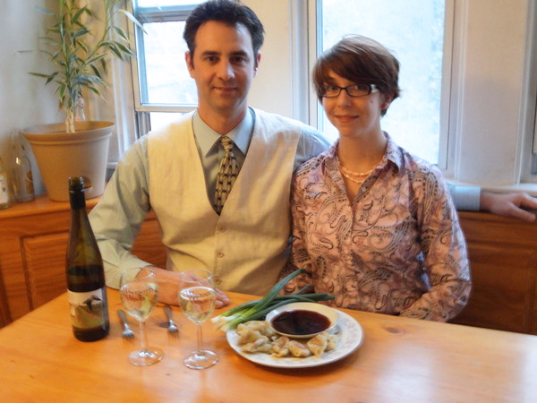 Dan and I were approached by Paula Neuman, a reporter from the Wyandotte Patch to share one of our favorite recipes. Dan selected to make Chinese Dumplings. This is by far one of my favorite dishes he makes for us. It is time consuming, but oh so delicious! Previous to Paula coming over to our home, Dan was visiting one of our clients and told him about what we were about to do. David Reno from Winedotte Wines recommended the white wine called Left Foot Charely's to serve with the Chinese Dumplings. Oh was he right! This Michigan white wine he choose brought out the flavor of the dumplings. It was so yummy! We wanted to gracefully thank Paula Neuman for the opportunity to share this recipe with all of the readers of the Patch, Jason Alley, editor of the Wyandotte Patch for the photo, David Reno for the wonderful wine.